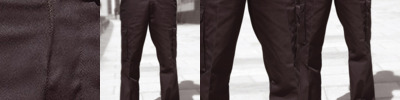 65% polyester/35% cotton. Traditional waistband - extendable at hip points. Belt loops. Zip fly with button over. Two side pockets. Rear concealed button pockets. Two side leg tear release cargo pockets.
