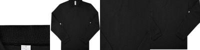3 button placket. Contrast taped neck and side vents. Flat knit rib with contrast piping at neck and cuffs. Twin needle finishing.