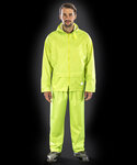 Waterproof and breathable Isotex 10000 polyester 150D Oxford fabric with taped seams, Conforms to EN343 class 3:2. Conforms to EN20471: 2013 +A1: 2016 Class 2 (trousers) (orange also RIS-3279-TOM). Quick access hip pockets and elasticated waist. Packs away into a separate bag with hanger loop for easy storage.