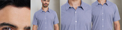A short sleeve shirt with soft collar styling. Two colour Microcheck gingham style pattern. Semi-fitted styling.