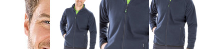 Warm-backed woven softshell with durable water-repellent finish. Fully printable fabric. Inner zip guard. 2 zipped lower pockets.