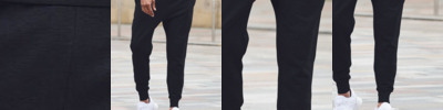 Slim-fit joggers. Elasticated self-fabric waistband with drawcord. Side seam pockets. Rubberised drawcord ends. Ribbed ankle cuffs.