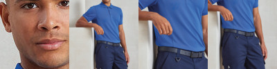 Hard-wearing, durable workwear shorts for men. Belt loops and metal button to the waistband and covered YKK zip for secure fastening. The left belt loop has a plastic triangle ring for affixing tools. Two open side pockets. The upper left leg carries a mobile-friendly hook and loop flap-sealed pocket with combined pen slot, while the right leg also features a handy flap-sealed pocket. Single patch pocket to the reverse. Made with certified recycled polyester.