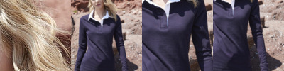 Self fabric taped side vents. Elastane reinforced cuffs for shape retention. Twin needle hems and traditional rugby collar. Slimmer feminine fit. Dyed to match plastic buttons. WRAP Certification.