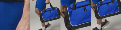 Compact size to fit most lockers, with detachable adjustable shoulder strap and pad. End pockets, one with mesh ventilation panel and protective base feet.