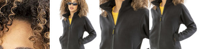 Hooded jacket with chin guard. Full zip-through. Concealed centre zip and zip pockets. Drawstring cord fastenings to hood with chrome eyelets. Double-panelled hood. Feminine fit. Cuffed sleeves. Made with recycled polyester, Spun dyed technology. Spun dye melts colour pigments and recycled polyester together, creating coloured fibres using fewer chemicals, less water and less CO2. Spun dye fabric also improves the colour-fastness of garments. We recommend using block out vinyl and inks.Product contains no branded neck or waist label. Removable Kimble or looped garment tags. Inner seam label holds important product information on one label with a second label containing brand information which can be cut-away.