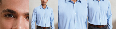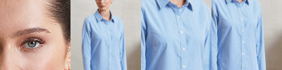 Smart and stylish shirt design in a fine poplin fabric with two fits available for male (tailored and classic) and female (fitted and classic) styles. Concealed placket. Stylish yoke design. Darts on bust front hem and back pane for fitted shape. Decorative top stitch on darts. Modern rounded 2 button cuffs. Rounded hem.