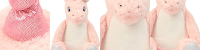 Soft plush unicorn zippie. Contrast feet and horn. Sewn eyes. Contrast mane and the tail. White panel on tummy is perfect for decoration. Zip access on base for direct access onto the tummy for decoration. Removable inner stuffing. Can be embroidered, printed and sublimation printed. Complies with EN71 European toy safety regulations. Remove all hang tags and their fasteners before giving these items to a child. Suitable for all ages.