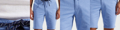 Men’s chino shorts with two swing pockets and two back jet pockets. Zip fly and button fastening to the front. Belt loops. Drawstring detailing. Product contains no branded neck label. Removable Kimble or looped garment tags. Inner seam label holds important product information on one label with a second label containing brand information which can be cut-away. Please note old stock may contain a fixed branded label.