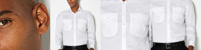 Fused collar. Easy iron. Doubled folded side and sleeve seams. Gamble placket. Single button cuff. Two chest pockets with button down flaps. Pen holder left side pocket as worn. Button down epaulettes on shoulders. Single needle stitched yoke and armhole. Straight hem. Spare button. Kustom Kit® woven label.