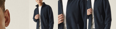350 Series anti-pill Symmetry fleece. Fleece cuffs. 2 zipped lower pockets. Adjustable shockcord hem.