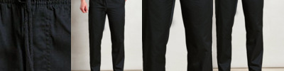 Fitted style on lower leg. Pocket on the right leg and a rear patch pocket. Elasticated waist. Zip fly and drawcord fastening.