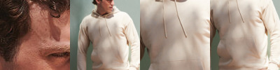Double lined hood. Drawstring at neckline. Double stitched pouched pocket, neck and armhole. Double stitched sleeve and waist rib. 1x1 athletic rib knit with Lycra®. Quarter-turned body to eliminate centre crease