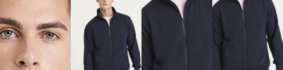 Full-zip sweatshirt. YKK plastic zip. Ribbed side panels. Ribbed cuffs and hem. Brushed inner fleece. Soft cotton-faced fabric creates the ideal printing surface. Simple tear-out label makes it perfect for rebranding.