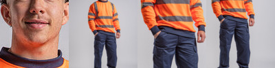 Certified EN ISO 20471:2013+A1:2016. RIS-3279-TOM ISSUE 1:2016 (Orange only). HV Orange/Navy & HV Yellow/Navy - Class 3. Ribbed contrast colour collar. Ribbed contrast colour cuff and hem. Inner fabric brushed fleece. Over shoulder, around arm and around body reflective tape.