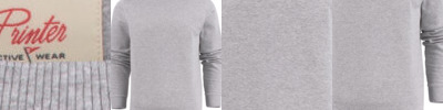 Side-seamed. Bound neck. Contoured seam on sleeves. Raglan sleeve. Mid-length. Tear-away label.