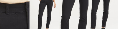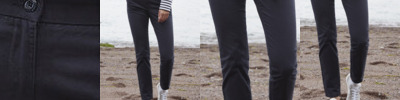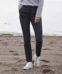 Skinny fit women's chino made from stretch fabric with peached finish for comfort and ease of movement. Featuring zip fly with button fastening at waist, belt loops, front slant pockets and button jet pockets at rear.
