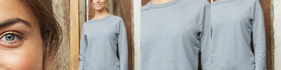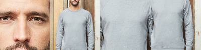 85% combed cotton/15% polyester. Brushed back fleece. Raglan sleeves. 2x2 ribbed collar, cuffs and hem. Taped neck. Half moon back yoke. Unbranded size label.