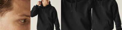 Essential unisex hoodie sweatshirt in medium fit with set-in sleeve. Self-fabric lined hood. Flat drawcords in matching body colour. Stitched buttonhole eyelets. Inside herringbone back neck tape. Self-fabric half moon at back neck.1x1 rib at sleeve hem and bottom hem. Flatlock topstitch on all seams. Kangaroo pocket with flatlock topstitch.