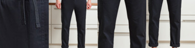 Lightweight chef’s cargo trousers made with certified recycled polyester. Elasticated waistband and drawcord. Mock stitched fly. Two side swing pockets. Welt pocket to the upper right leg with combined pen pocket. Single welt pocket to the reverse with press stud tab for fastening. A tapered fit to the lower leg with optional turn-up hem for styling.