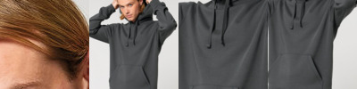 35% sustainable cotton and 65% polyester brushed back fabric. Grown-on hood with drawcords. Ribbed cuffs and hem.