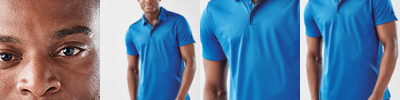 Mositure wicking polo shirt, features a durable self fabric collar, with high contrast trim at the collar and shoulders.