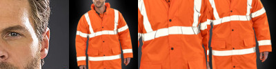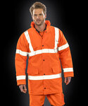 300D PU coated polyester. Quilted padding and polyester lining. Conforms to EN ISO 20471: 2013 + A1: 2016 class 3, EN343: class 3.1. RIS-3279-TOM (orange only). Waterproof with taped seams. Concealed hood with adjusters (orange is detachable). Collar high full length zip with studded storm flap. Two reflective bands around the body, sleeves and one over each shoulder. Right chest media pocket. Inner chest pocket. Two front pockets. Elasticated cuffs and hem. Branded on right front pocket.