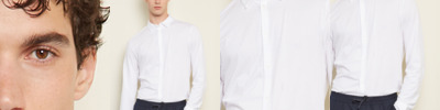 100% mercerised cotton. Italian spread collar. Self colour buttons. Back yoke. Two button adjustable cuffs with button on cuff gauntlet. Curved hem. Unbranded size label.