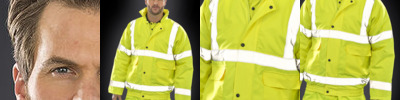 EN471 Specification Class 3 approved. EN343 approved. Fully taped waterproof seams. Tough and durable. Waterproof. Windproof. Excellent warmth factor. Comfort fit. Fully taped waterproof seams. Concealed hood with drawstring adjuster. Heavy duty full front zip fastening. Stud closing storm flap. One inside right pocket. Elasticated waist band. 50mm sewn on safety tapes. Two side pockets with over flaps protection. SIZE S - 38" M - 41" L - 42" XL - 47" XXL - 50" 3XL - 53"