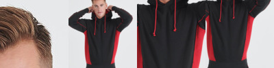 Shaped to fit. 320gsm. Peached fabric, soft-feel finish. Waffle knit hood. High polished, nickel free eyelets and drawcord ends. Polyester dyed to match tubular draw cord. Brushed fleece inner. Twin-needling detailing creates a high quality finish. Cut and sew two by one ribbed cuffs and hem. Kangaroo pouch pocket. Self-coloured neck size label.