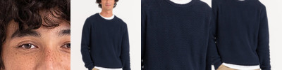Regenerated cotton blended with recycled polyester sweater. Seed stitch knit with rib neck, cuffs and hem.