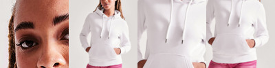 Heavyweight hoodie. Cross over neck detail. Twin needle stitching detail. Three panel double fabric hood. Flat lace drawcords. Kangaroo pouch pockets. Ribbed cuffs and hem. Soft cotton faced fabric created ideal printing surface. Simple tear out label makes it perfect for rebranding. Worldwide Responsible Accredited Production (WRAP) certified production. Brushed inner fleece. Thumb holes in the cuffs.