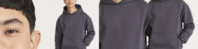 Oversized fit. Heavyweight. Three-panel, double-fabric hood. Kangaroo pouch pocket with inner phone pocket. No drawcords. Ribbed cuff and hem. Brushed inner fleece. Tear-away label. 100% cotton-faced hood.
