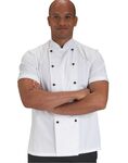 - Quality lightweight short sleeve chef's jacket with 10 removable black plastic studs