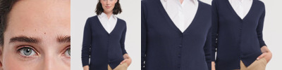 CottonBlendTM combines soft cotton handfeel with superior performance characteristics. Fully fashioned knitted v-neck pullover with set-in sleeves.1x1 rib trim with elastane edge on cuffs and waistband for superb stretch and recovery. Machine-washable at 40°C. Fine gauge knit, ideal for embroidery.