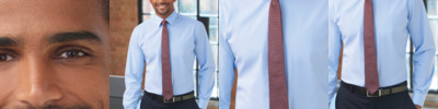 95% cotton/5% elastane. Easy care, breathable fabric. Tailored fit. Four button placket. Side vents. Ribbed cuffs. Twin needle hem.