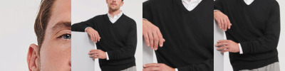 CottonBlendTM combines soft cotton handfeel with superior performance characteristics. Fully fashioned knitted v-neck pullover with set-in sleeves.1x1 rib trim with elastane edge on cuffs and waistband for superb stretch and recovery. Machine-washable at 40°C. Fine gauge knit, ideal for embroidery.