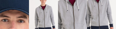 35% sustainable cotton and 65% polyester brushed back fabric. Centre front zip. Ribbed cuffs and hem.