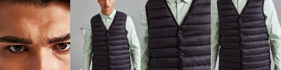 Press stud fastening. Horizontal sandwiched baffles on front and back body, Internal binding on all seams. Stretch binding around edges, cuffs and hem for added protection. Internal pockets. . Product contains no branded neck label.* Removable Kimble or looped garment tags. Inner seam label holds important product information on one label with a second label containing brand information which can be cut-away.