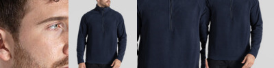 Half-zip microfleece. 100% recycled polyester microfleece. 100% recycled zip tapes.