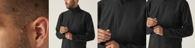 Softshell 3 layer bonded fabric. Performance membrane mid layer and microfleece inner layer. Fitted style, zip through front. Two front zipped pockets and one zipped pocket on left sleeve