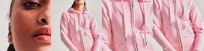 Shaped to fit. 320gsm. Peached fabric, soft-feel finish. Waffle knit hood. High polished, nickel free eyelets, zip and drawcord ends. Polyester dyed to match tubular drawcord. Concealed zip. Brushed fleece inner. Twin-needling detailing creates a high quality finish. Cut and sew two by one ribbed cuffs and hem. Kangaroo pouch pocket. Self-coloured neck size label.