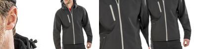 Warm-backed woven Softshell XPT waterproof and breathable. 3-layer wind-resistant membrane fully printable fabric. Inner zip guard. 2 zipped lower pockets and 1 zipped chest pocket.