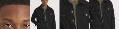 Cotton/elastane blended denim jacket with classic denim styling. 4 pocket design, shank button placket, button cuffs and adjustable back. Fashion fit. Stretch denim. 4 pocket styling. Classic light and dark blue washes. Contrast stitching. Classic denim jacket panelling. Button cuff detail. Inside back neck hanger loop.