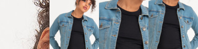 Cotton/elastane blended denim jacket with classic denim styling. 4 pocket design, shank button placket, button cuffs and adjustable back. Specific feminine fit with crop design. Contemporary female fit. Fashion fit. Stretch denim. 4 pocket styling. Classic light and dark blue washes. Contrast stitching. Classic denim jacket panelling. Button cuff detail. Inside back neck hanger loop.