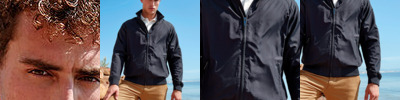 Enhanced water repellency – rainwater rolls off fabric. Breathable. Windproof. Microfleece lining. YKK zip with chin guard and removable zip pull. Reflective shoulder trim, front and back. Top stitch detail, front and back. Zipped chest and front pockets. Shaped body panels and fitted waist. Open cuff and waist. Stand-up collar. Hand loop.