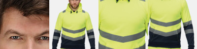 65% polyester 35% cotton brushed back fabric. Conforms to EN ISO 20471:2013 +A1:2016 Class 2 (orange also RIS-3279/TOM). Grown-on hood with adjusters. Ribbed cuffs and hem with kangaroo pocket.