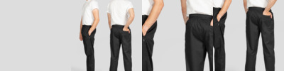 Drawstrings inside the waist. 2 gusseted patch pockets with flap and press stud at back and sides. BSCI certified.