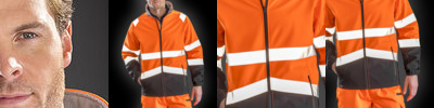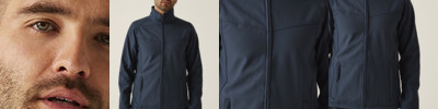 Warm-backed woven Softshell XPT waterproof and breathable 3-layer membrane fabric. Fully printable outer fabric. Wind-resistant membrane fabric. 2 zipped lower pockets and 1 zipped chest pocket.