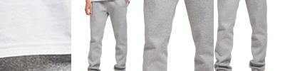 Natural fibre, knitted. Elastic rib waistband with drawstrings. Back pocket, seam pocket. 100% organic cotton.